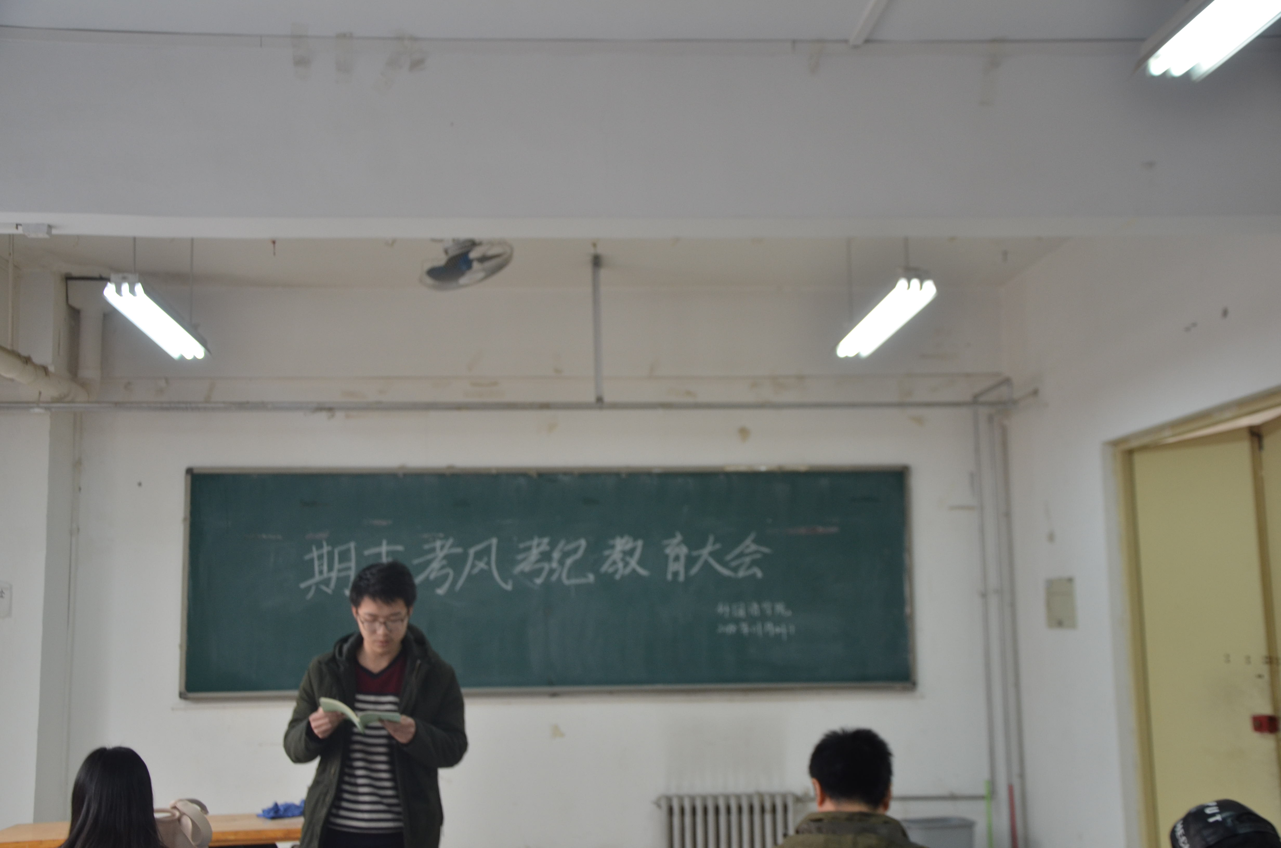 本网讯(审稿:王颖 供稿:饶芝玉)为加强学风建设,严肃考风考纪,增强我院学生诚信意识,1月4日12点半,学院于龙子湖校区海棠楼202室召开了本学期期末考风考纪主题教育大会。团委书记李沛携主要学生干部及各班班长支书、学习委员参加了本次会议。