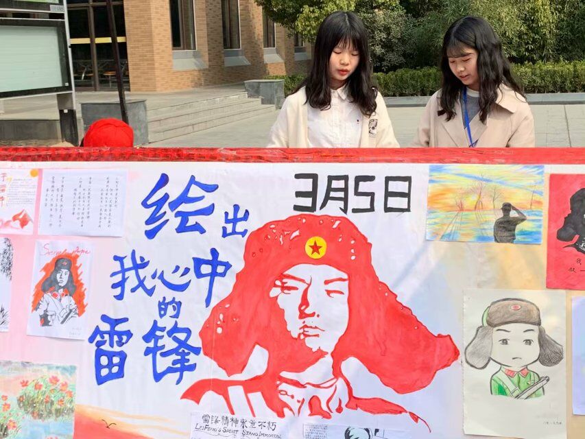 活动前期,我院负责部门面向全院征集“绘出我心中的雷锋”主题书画作品。我院学子踊跃参加,用自己的方式表达对雷锋的赞美:或是朗朗上口的诗歌、或是遒劲有力的书法、亦或是线条变化多样且色彩鲜明的绘画,都彰显着对雷锋同志的崇高敬意。活动当天,内容丰富的宣传报引得阵阵学生驻足观望,工作人员在现场分发特制有雷锋头像及语录的精美书签。随后,工作人员为前来观看的老师和学生介绍2018年外国语学院的系列公益活动。期间,校党委副书记、工会主席李成吾一行人来到我院志愿服务展台,认真聆听学雷锋特色活动品牌介绍,并对我院学子高涨的学雷锋精神热情给予了肯定。