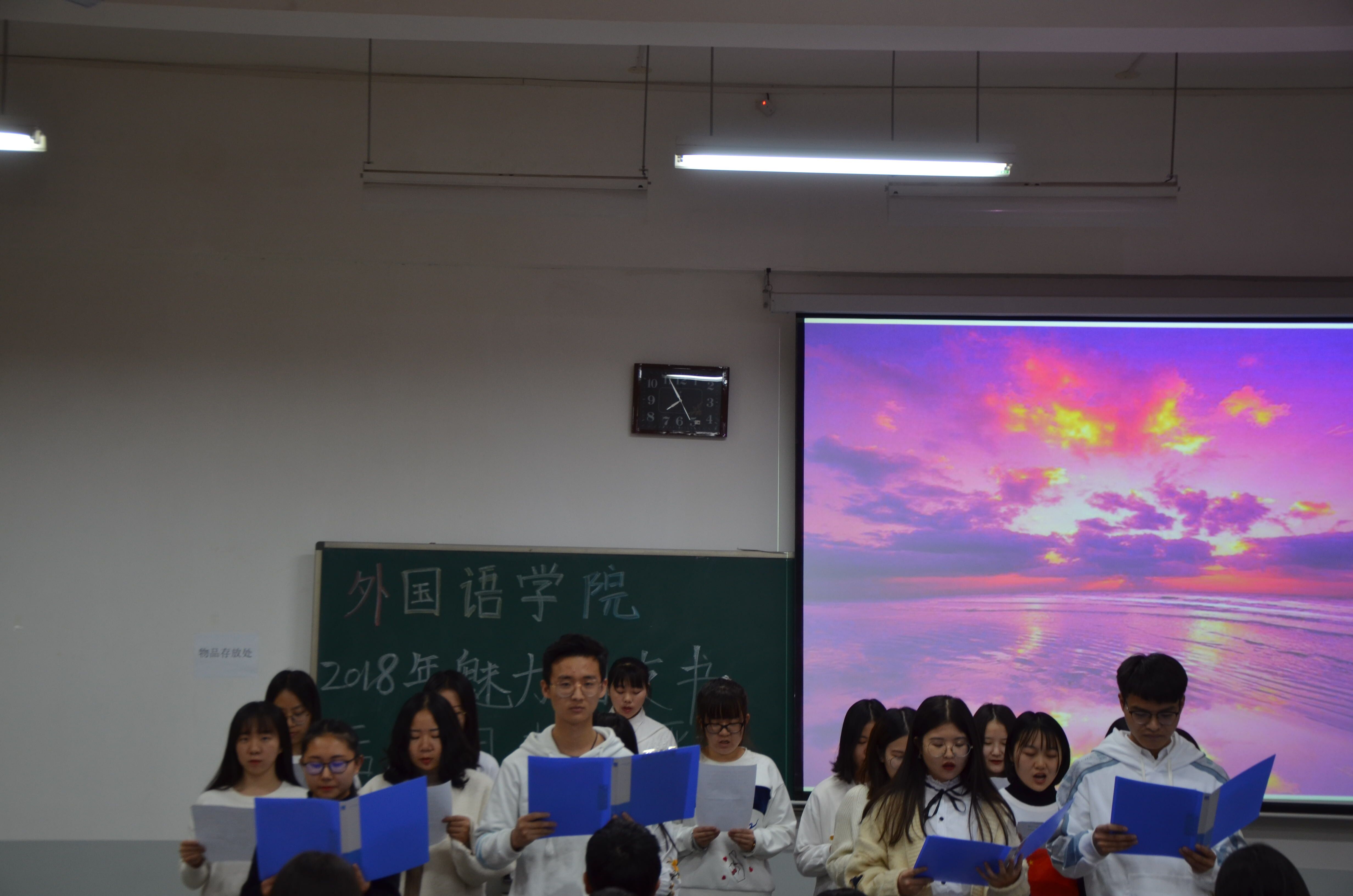 “风华正茂,青春与理想同飞翔;意气风发,我们与支部共成长……”在主持人一段精彩的开场白之后,此次活动在同学们热烈的掌声中拉开了序幕。本次评选分个人评选和团支部评选两个环节。在个人评选期间,参选者借助精美的PPT,从政治素养、学习成绩、工作能力和校园活动四个方面分享了自己的成长与收获,展示了自己精彩生活和个人魅力,赢得评委和观众们的阵阵掌声。一张张满载回忆的照片,伴随着轻柔悠扬的旋律缓缓呈现,这是各支部的舞台。丰富多彩的团日活动,各种类型的荣誉证书,欢乐轻松的班级聚餐,记录着支部成员成长的点滴,一起度过的美好时光。除了PPT的讲演与展示,各支部也带来了精心准备的节目。17级英语二班的诗歌朗诵《祖国啊,我亲爱的祖国》,满含深情,气势磅礴,诉尽了对祖国的热爱与期盼,诉说了为祖国奉献的激情与决心。“黑夜给了我黑色的眼睛,我却用它去寻找光明……”17级英语三班的一首《荣耀》用激昂的旋律,动情的演唱传达了他们义无反顾,勇敢追梦的热情与信念。一曲悠扬动听的日语演唱,令人如痴如醉,一舞轻快活力的手语舞,极尽婉转和柔美,各个精彩节目充分展示了团支部的多才多艺。其中,精彩的串场节目吉他英文弹唱、个人独奏更是将活动气氛推向高潮,台下热烈的掌声、欢呼声不断。