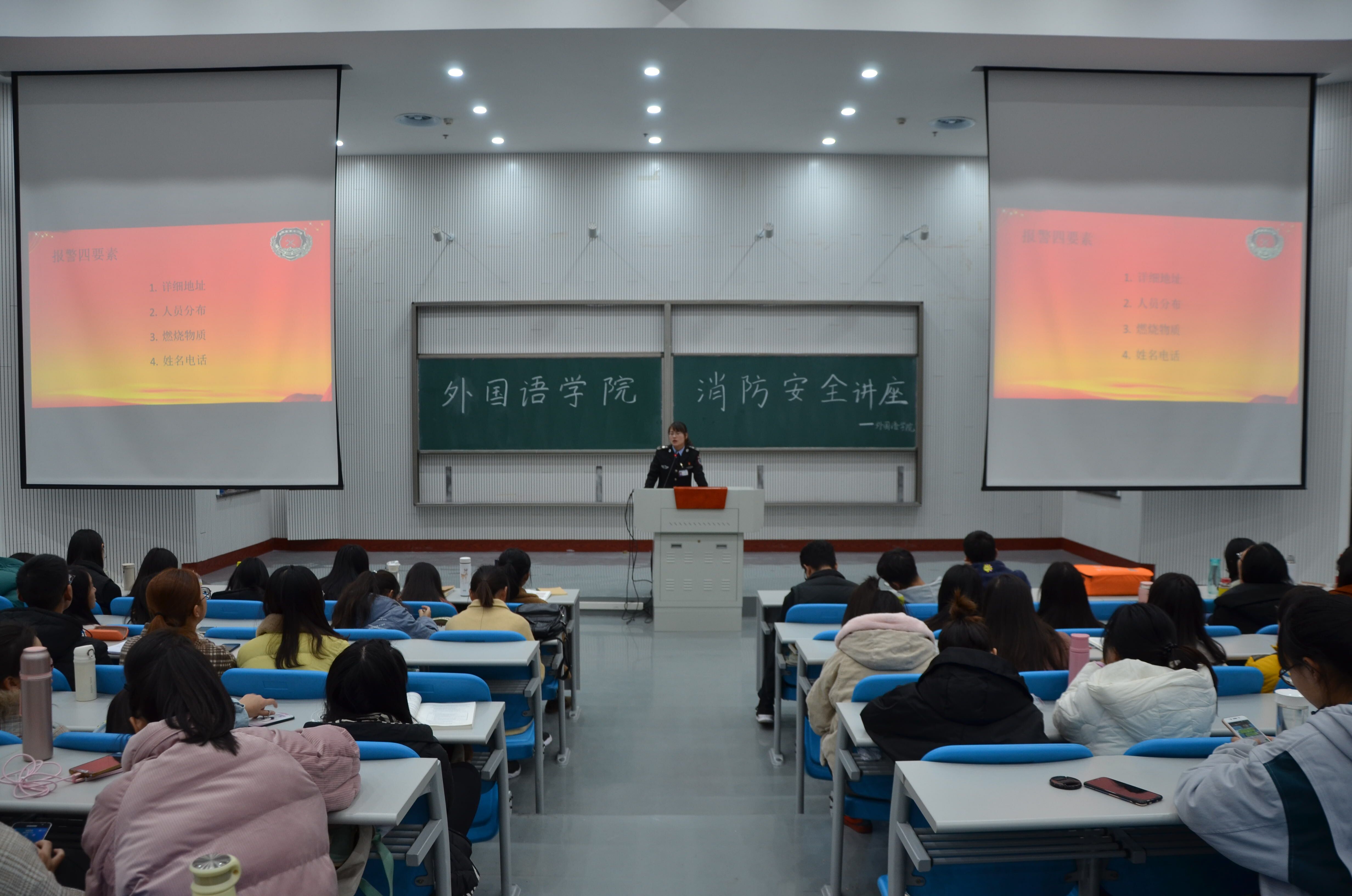 本网讯(审稿:王颖 供稿:饶芝玉)为传播消防安全理念,普及消防安全常识,进一步增强我院学生消防安全意识,2018年12月4日下午5点,我院诚邀河南省消防协会宣传与服务中心教员张金霞,于龙子湖校区繁塔楼AB间大教室2为学院学生作消防安全知识讲座。15、16、17级部分学生及18级全体学生参加本次讲座。