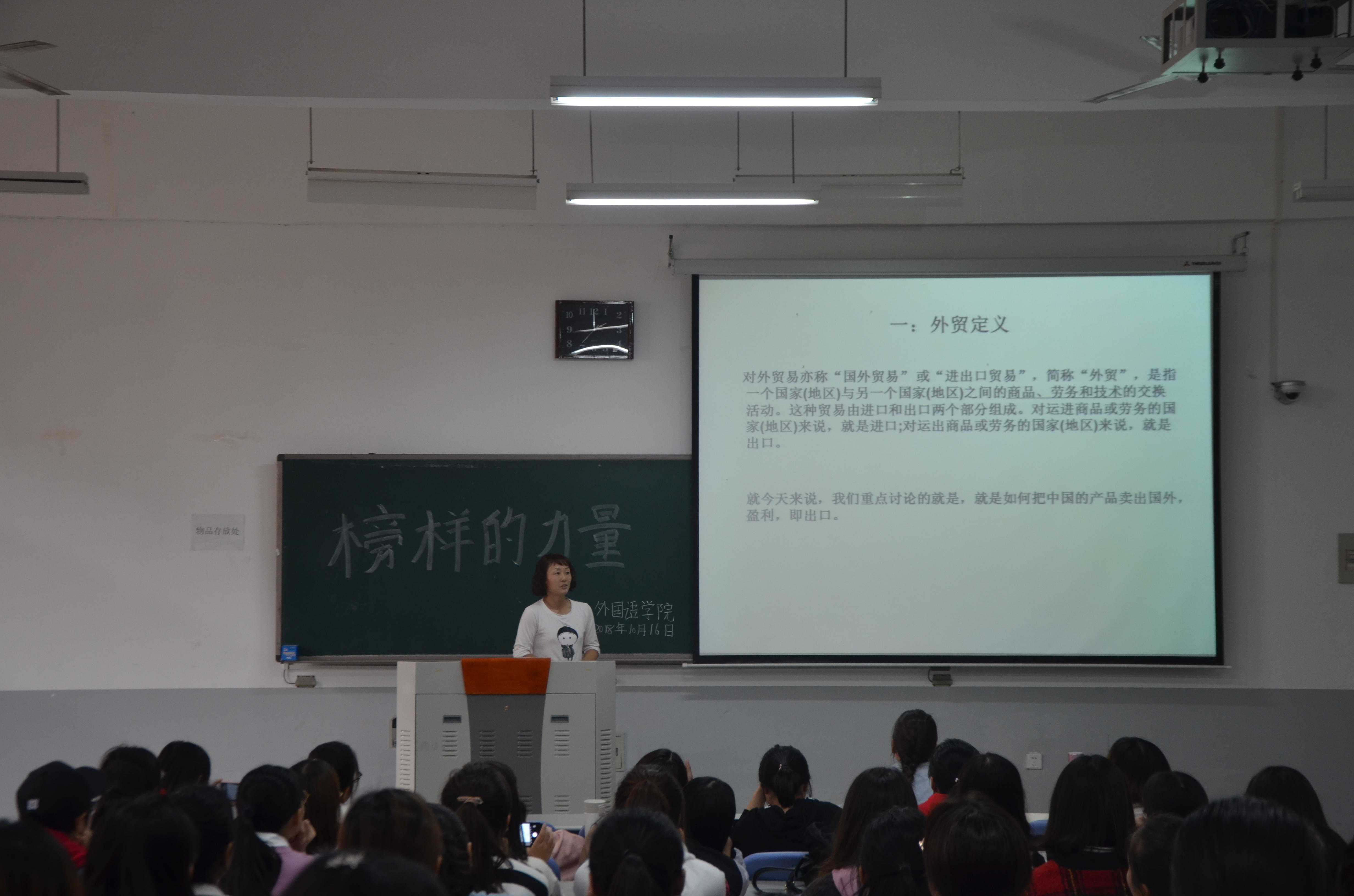 讲座伊始,刘志芳从自身工作经验出发,引出本次主题——浅谈外贸。她以关境为界,详细解释了外贸的相关定义,概述了外贸流程的广告宣传、合同签订等环节。同时,她以FOB为例,强调从事外贸行业需要扎实的专业基础知识,熟练掌握相关贸易用语以扩大知识储备,并不断提高自身的适应能力和抗压能力。最后,刘志芳为在场学生介绍了英语类、外贸类的专业证书,并分享了备考经验和心得。