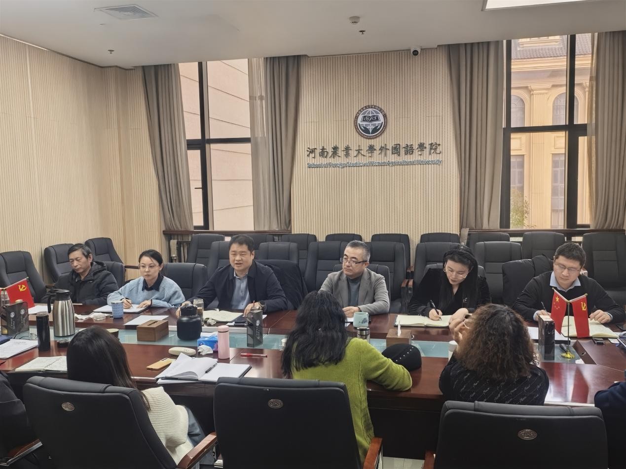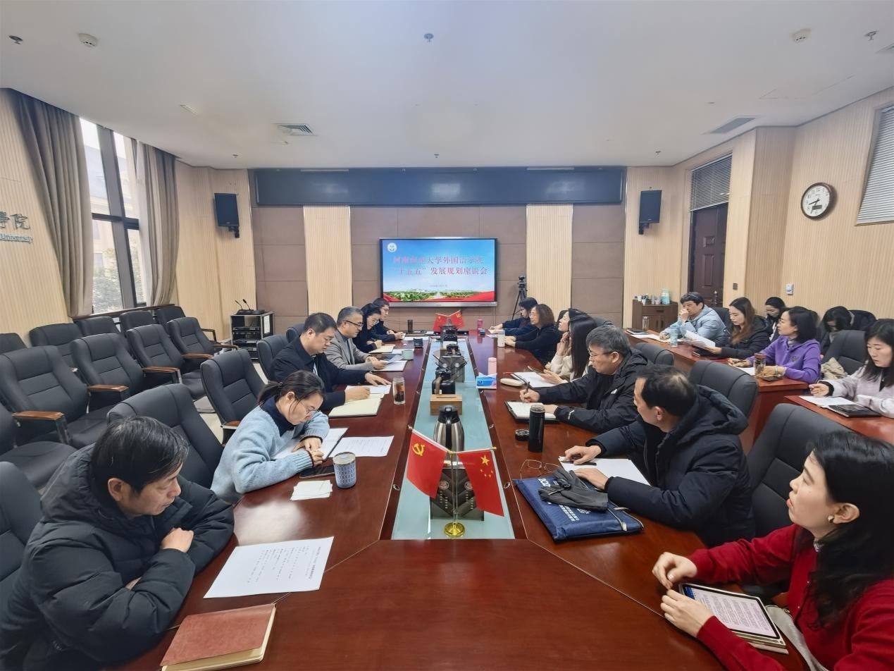 本网讯(审稿:豆涛 供稿:周晓辉)1月31日,外国语学院在繁塔楼A320会议室召开“十五五”发展规划座谈会。学院领导班子全体成员、各系部室主任、教学与科研秘书、教授及博士代表等参加会议。座谈会由院长屠克主持。