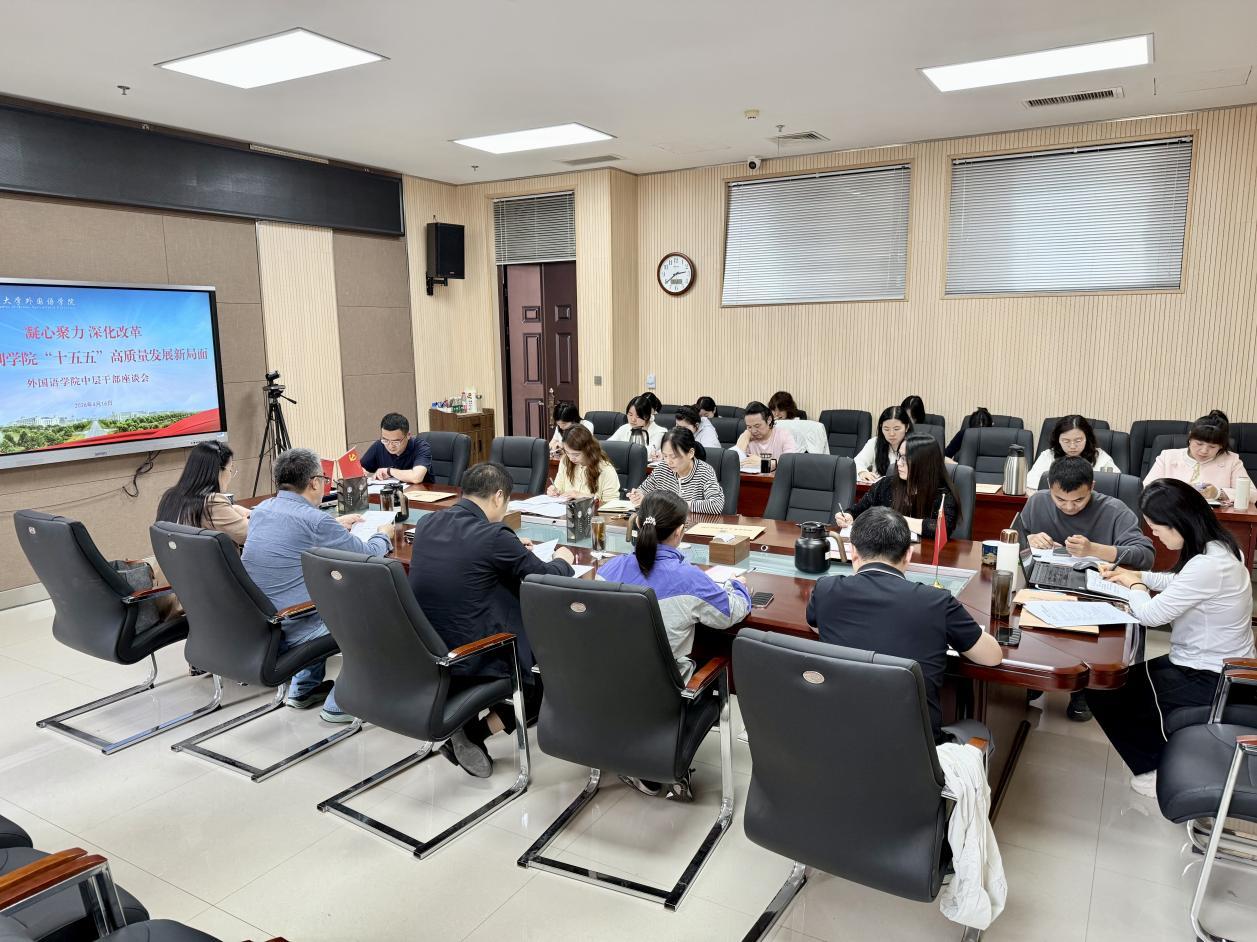 本网讯(审稿:豆涛 供稿:周晓辉 图片:黄彪)4月16日,外国语学院在A320会议室召开“凝心聚力、深化改革,奋力开创学院‘十五五’高质量发展新局面”中层干部座谈会,学院领导班子成员及全体中层干部参加会议。