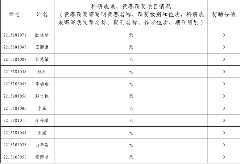 根据规定,专家审核小组共11人对申请推荐免试攻读研究生资格的学生进行了科研成果、竞赛获奖的审核鉴定,意见如下: