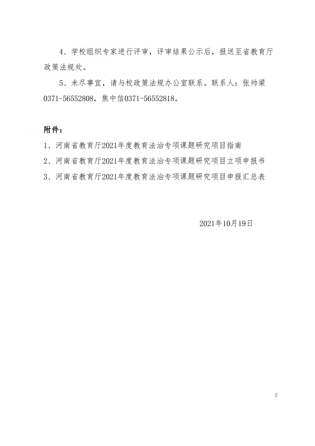 关于组织申报河南省教育厅2021年度教育法治 专项课题研究项目的通知