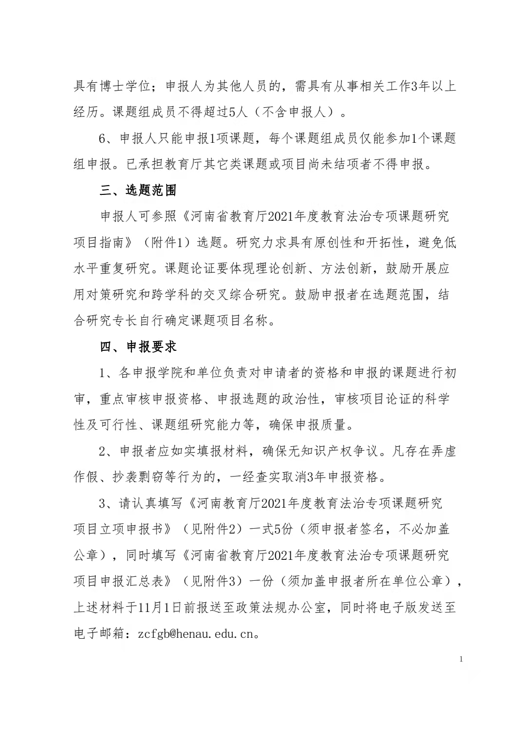 1、河南省教育厅2021年度教育法治专项课题研究项目指南