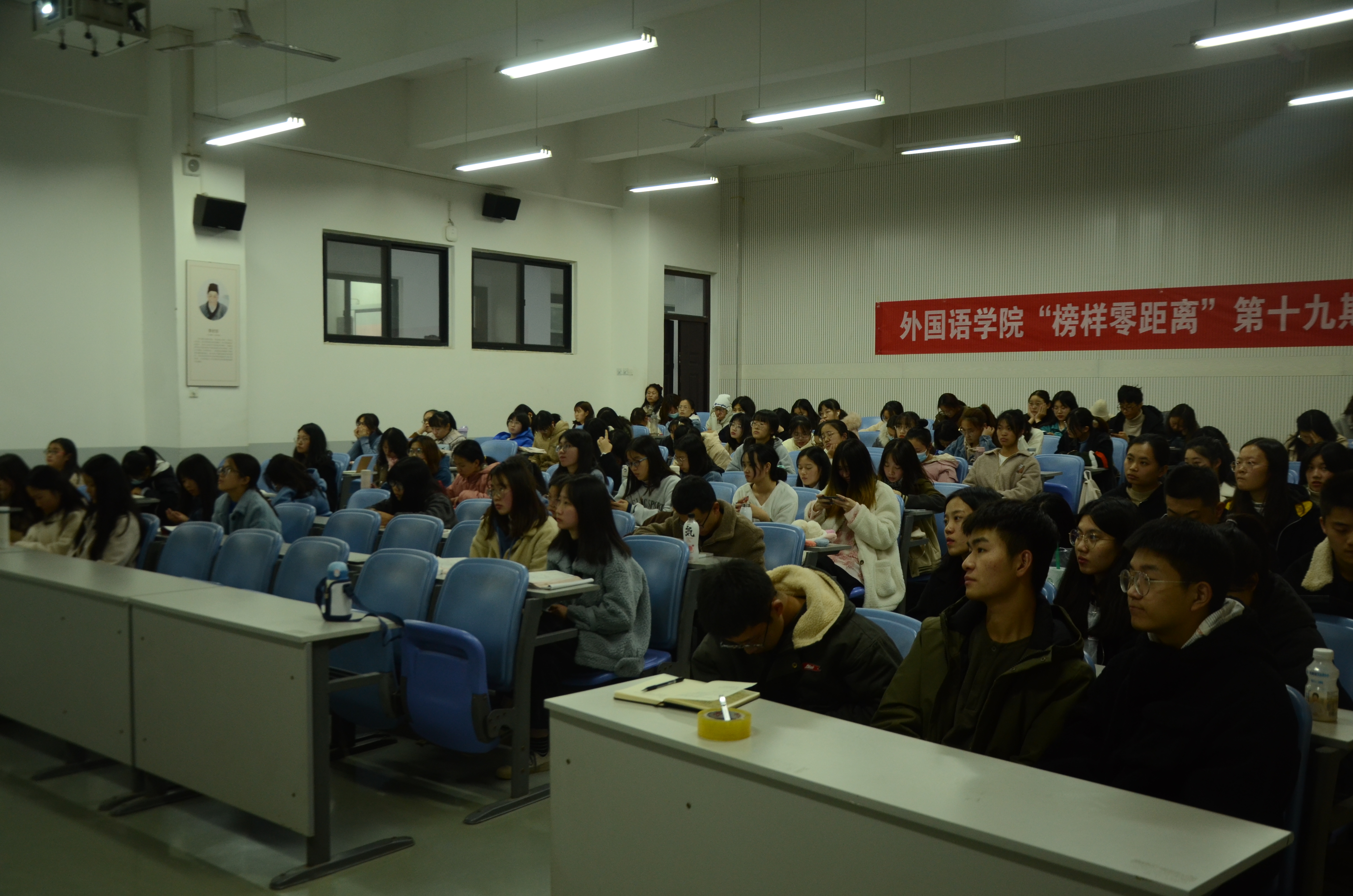 本网讯(审稿:李沛 供稿:王莉)为发挥榜样的力量,激励广大学生明确学习目标,掌握学习方法,11月22日晚上7点,我院于龙子湖校区繁塔楼C106教室举办了第19期榜样零距离讲堂,学院7名国家奖学金、国家励志奖学金获得者及一名推免生全程分享了经验。我院19级、20级学生认真聆听此次讲座。