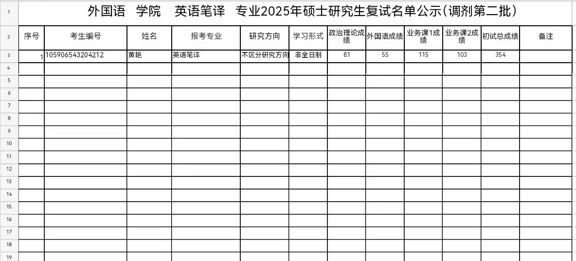 外国语学院英语笔译专业2025年硕士研究生复试名单公示(调剂第二批)