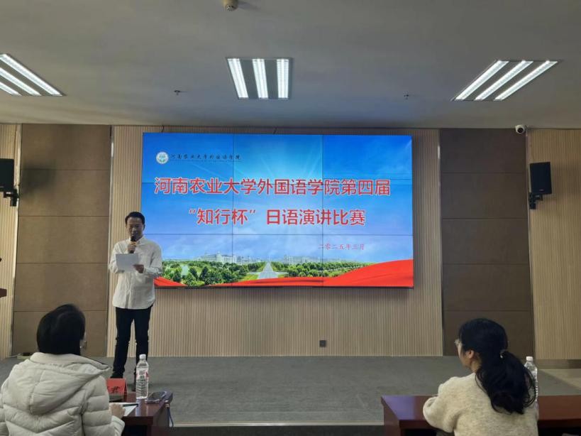 本网讯 (审稿:杨鑫 供稿:武宗励 陈新忆)为了提升同学们的日语实践能力,打破书本知识的局限,由湖北词源教育投资管理有限公司协助举办、河南农业大学外国语学院承办的第四届“日语知行杯”演讲比赛于2025年3月16日上午九点在繁塔楼A324会议室拉开帷幕。本次比赛以“デジタル時代の人間関係(数字时代的人际关系)”和“AI時代の日本語学習(AI时代下的日语学习)”为主题。担任本次比赛评委的老师为日语系和团委老师。