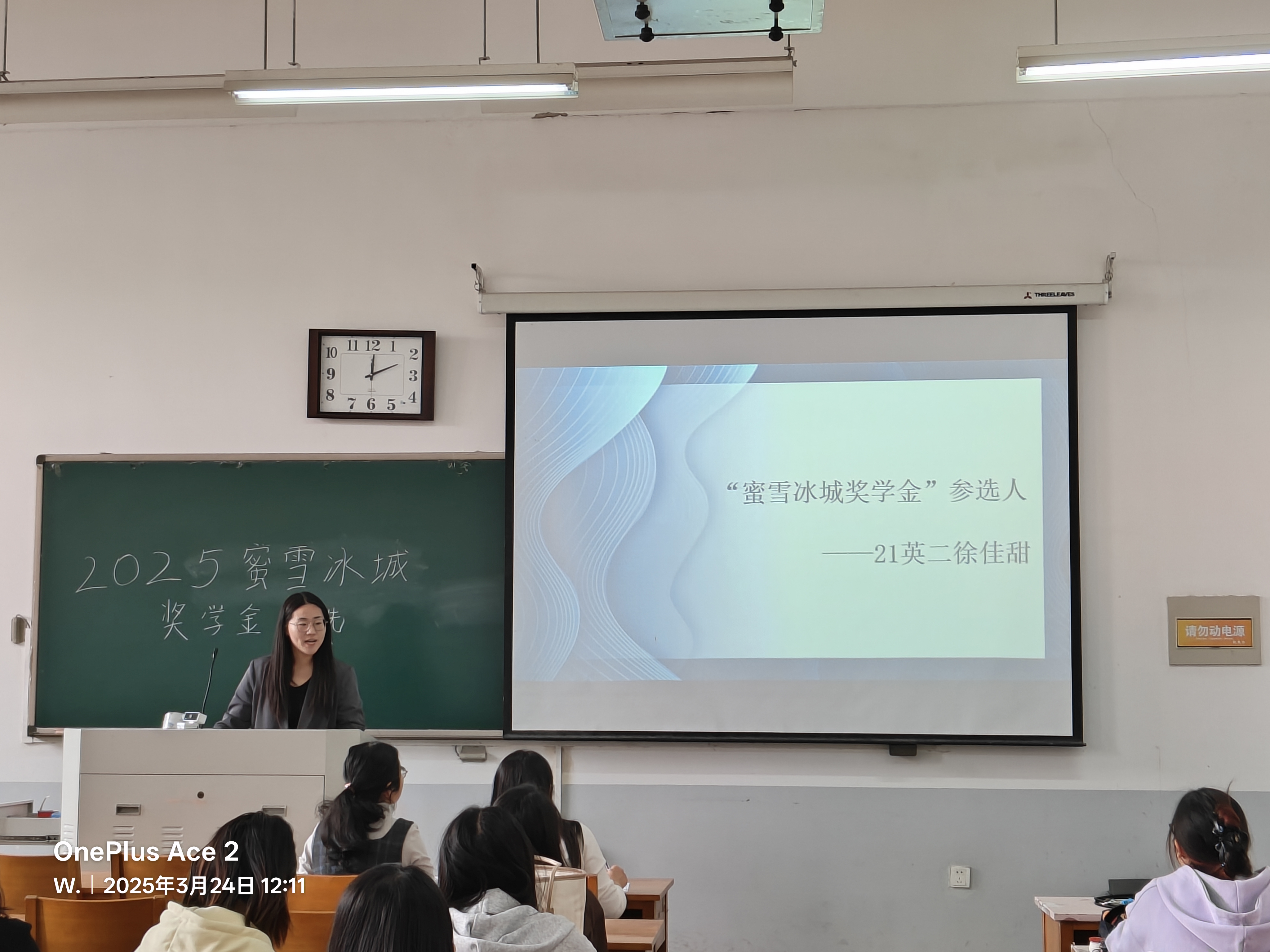 本网讯(审稿:杨鑫 供稿:武宗励 王馨雨)2025年3月24日,外国语学院在繁塔楼E110召开了蜜雪冰城奖学金评选会。此次评选会旨在奖励在学业和综合素质方面表现优异的学生,激励他们不断进取。