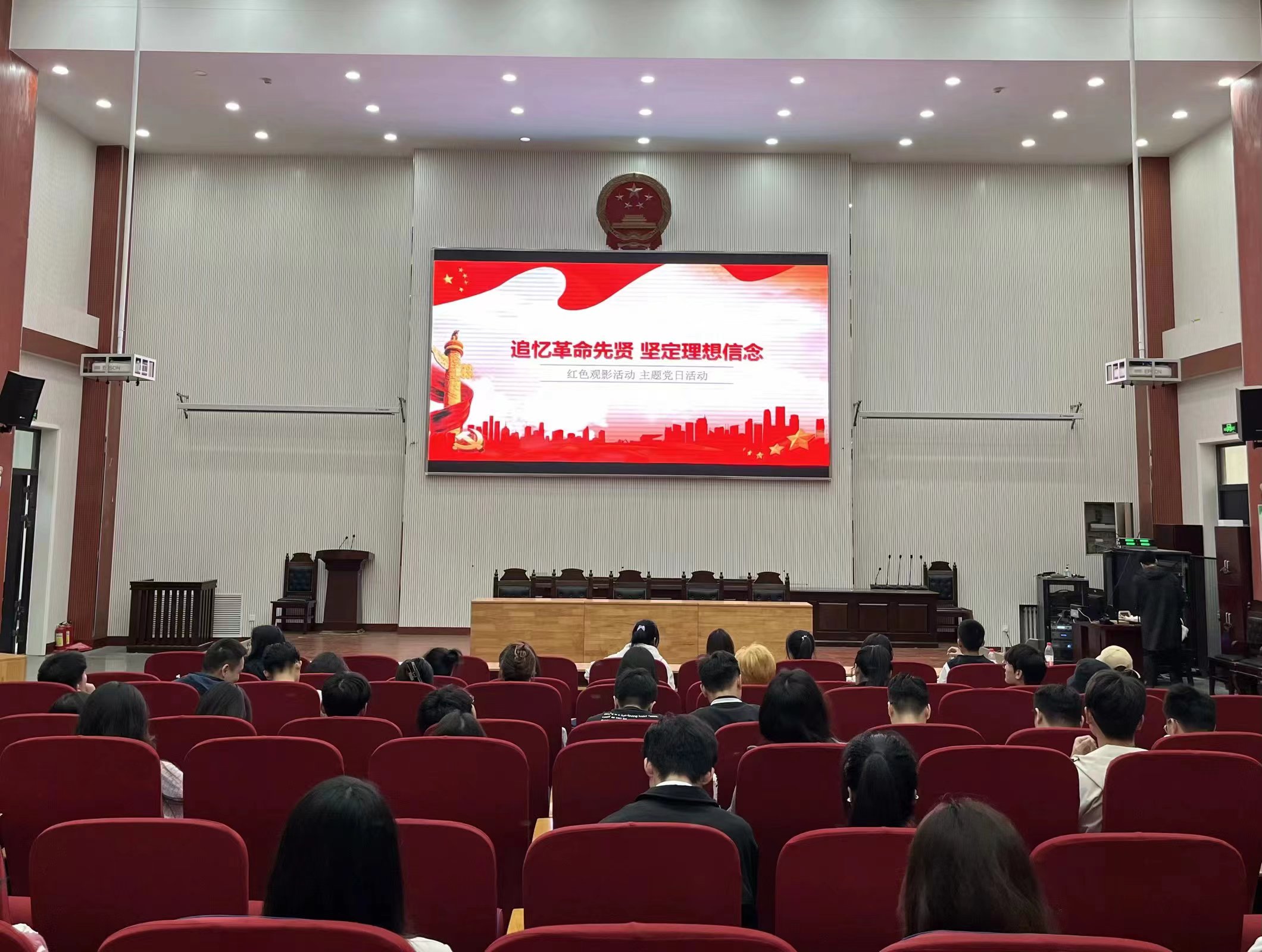 本网讯(审稿:王启佩 供稿:冯超)为了传承红色基因,激励同学们争做有为青年,10月24日下午,外国语学院与文法学院、经管学院、信管学院共同组织党员在繁塔楼模拟法庭开展“红色光影”活动,学院21级全体学生党员及大学生党建办公室学生干部参加此次活动。