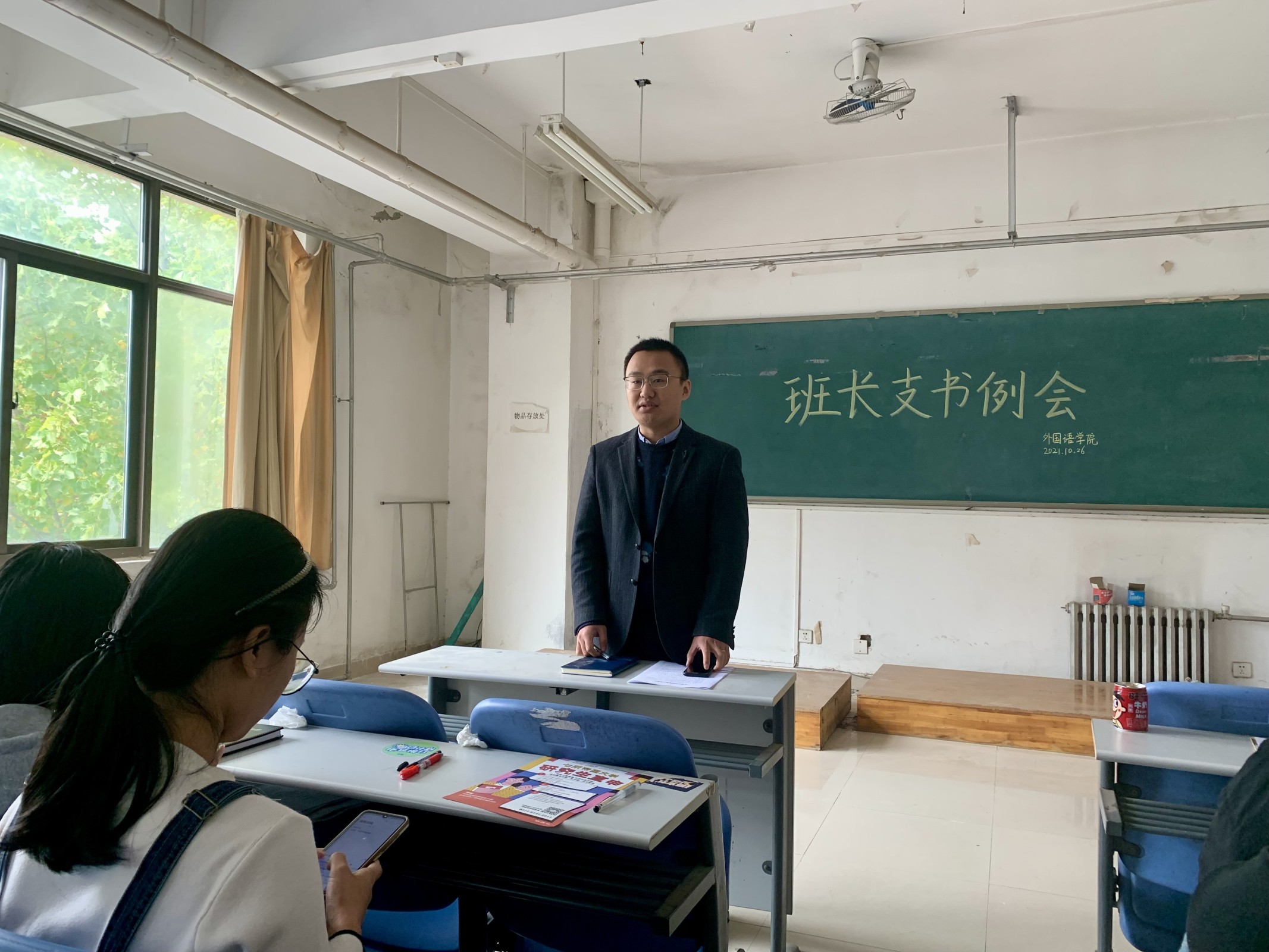 本网讯(审稿:冯超 供稿:黄湘 )为统筹部署近期各项事务,推进学院各项工作的有序开展,10月26日中午12点,外国语学院于龙子湖校区海棠园202自习室召开本学期第二次班长支书例会。团委副书记冯超携主要学生干部和各班班长支书参加此次例会。