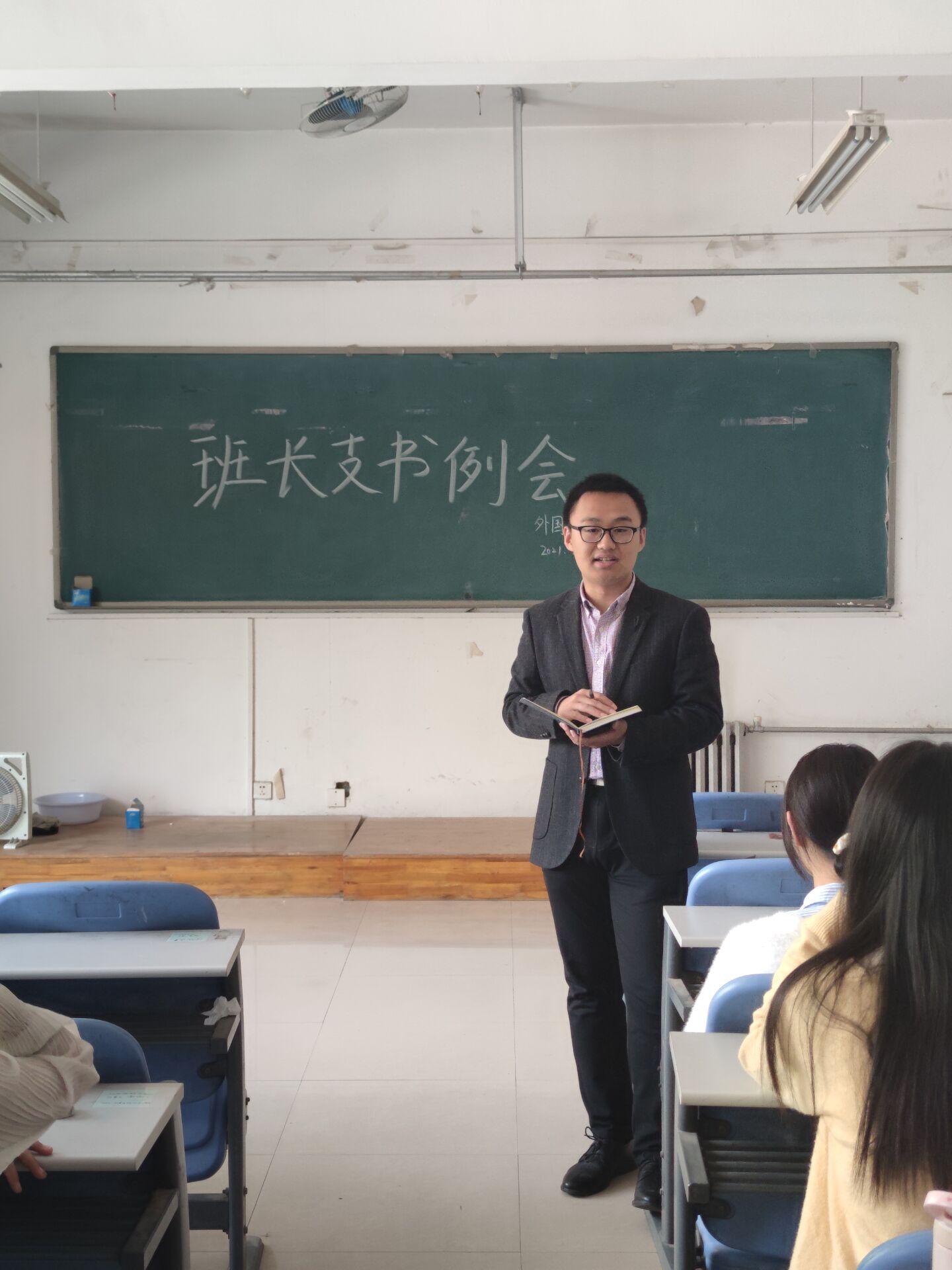 本网讯(审稿:冯超 供稿:黄湘)为统筹部署近期各项事务,推进学院各项工作的有序开展,4月27日中午12点半,外国语学院于龙子湖校区海棠园202自习室召开了本学期第九次班长支书例会。院团委副书记冯超携主要学生干部和各班班长支书参加此次例会。