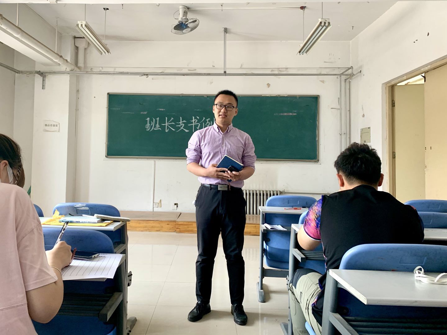 本网讯(审稿:冯超 供稿:黄湘)为统筹部署近期各项事务,推进学院各项工作的有序开展,5月11日中午12点半,外国语学院于龙子湖校区海棠园202自习室召开了本学期第十次班长支书例会。外国语学院团委副书记冯超携主要学生干部和各班班长支书参加此次例会。