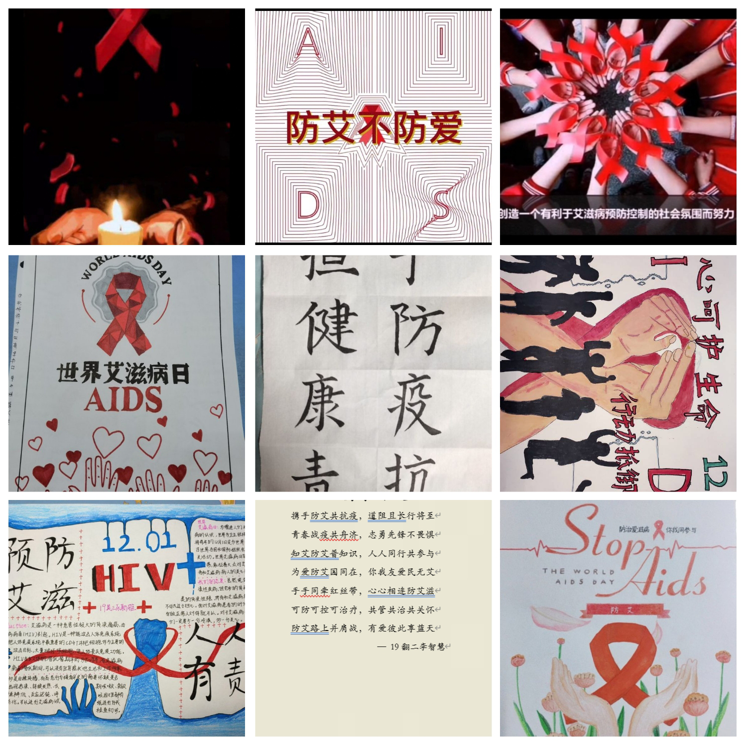 本网讯(审稿:王颖 供稿:王莉)12月1日是第33个“世界艾滋病日”,为普及防疫抗艾知识,加强学生们的健康防范意识,12月3日至6日期间,我院面向全院学生开展了以“携手防疫抗艾,共担健康责任”( Global solidarity share dresponsibility)为主题的宣传教育作品征集活动。