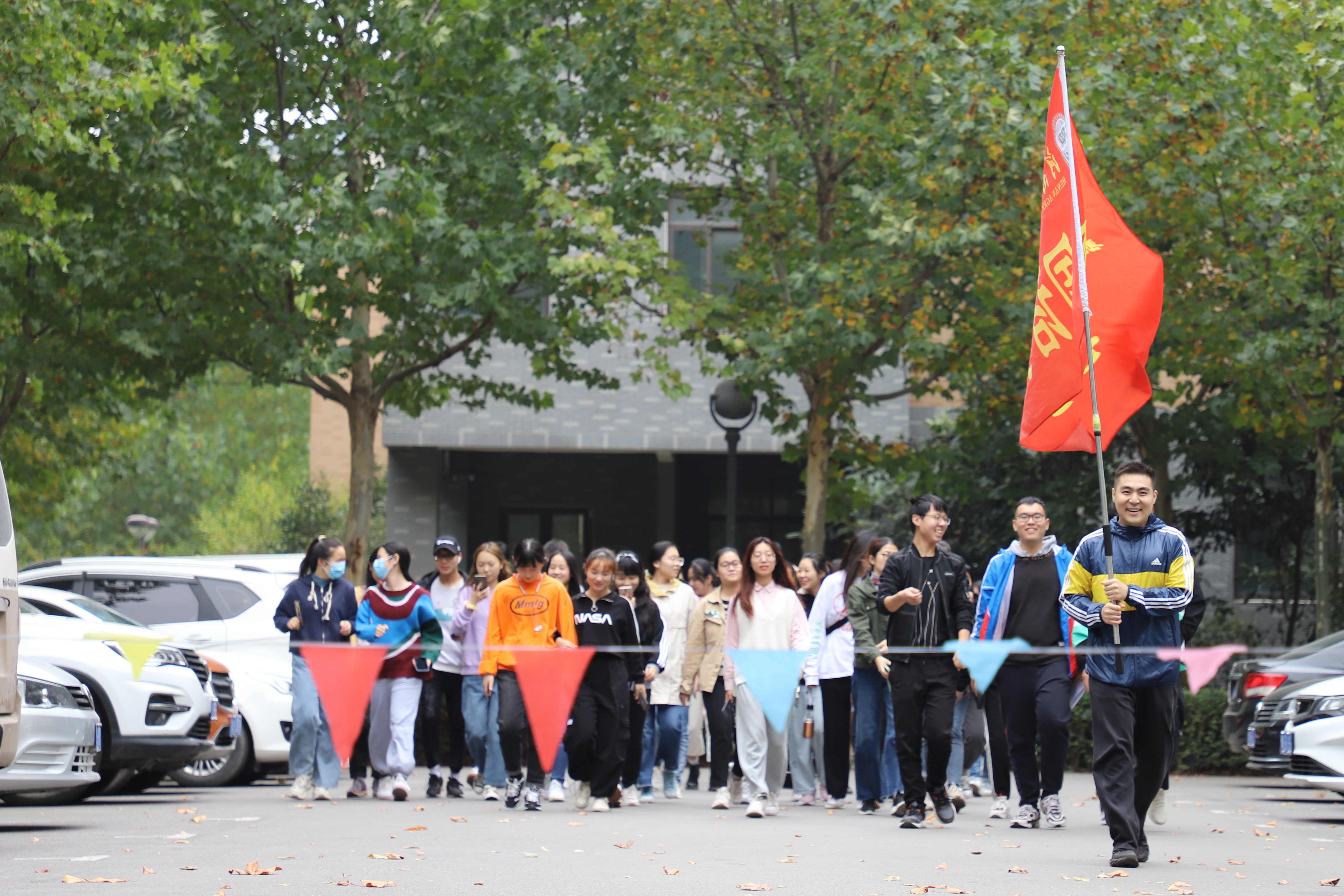 本网讯(审稿:李沛 供稿:王莉)为丰富外国语学院广大学生的文体生活,践行绿色出行,健康中国理念,10月20日下午两点半,我院在龙子湖校区一餐厅广场举行了全民健步走活动暨全民健身月启动仪式。团委书记李沛,辅导员王颖、闫雪茹携主要学生干部及参赛选手参与了此次活动。