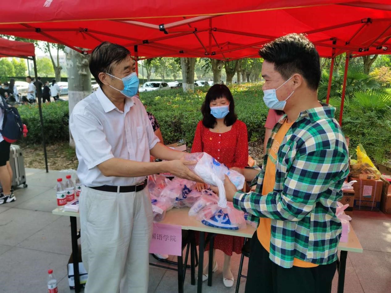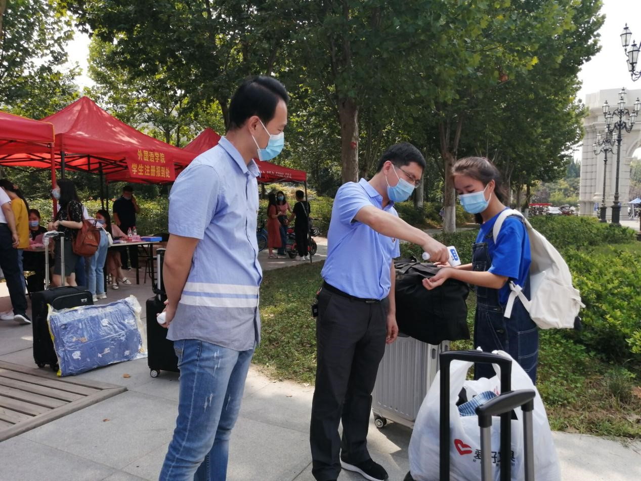8月30日早上,外国语学院秋季复学返校工作正式拉开帷幕。院党委书记邓振营、院长张俊杰教授带领院领导班子亲临现场迎接学子返校。期间,他们与学生亲切交流、勉励同学、为返校学生发放防疫物资、慰问现场工作人员和志愿者。