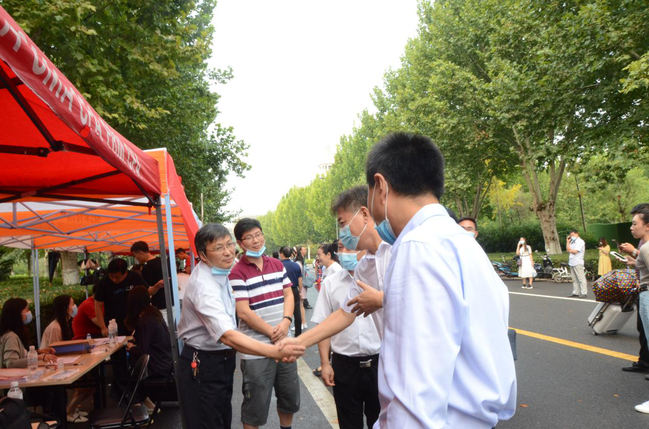 清晨,迎新工作便如火如荼的拉开了序幕。我院志愿者和老师们在岗位上热情细心地引导新生完成报到流程,并耐心地介绍疫情期间我院各项管理规定。他们严格按照报道流程、仔细核查新生相关材料,认真登记和复查体温,并贴心发放精心准备的防疫大礼包,让新生在初入学校便感受学院无微不至的关怀。院长张俊杰带领领导班子亲临现场迎接新生。他们与我院新生亲切交流,祝贺新生迈入新的学习征程,同时也鼓励其扎根学术研究,早日取得优秀的学术成果。