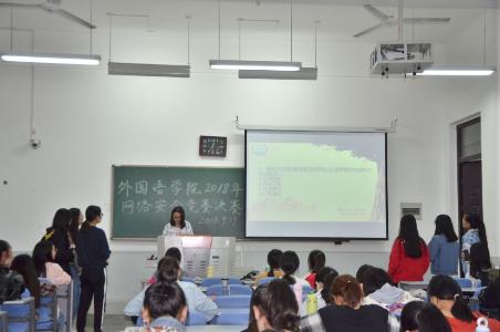 本网讯(审稿:王颖 供稿:饶芝玉)为响应学校号召,加强学生网络安全理论知识学习,引导其树立网络安全防范意识,9月19日晚上7点,学院于龙子湖校区繁塔楼C107教室举办了外国语学院2018年网络安全知识竞赛决赛。