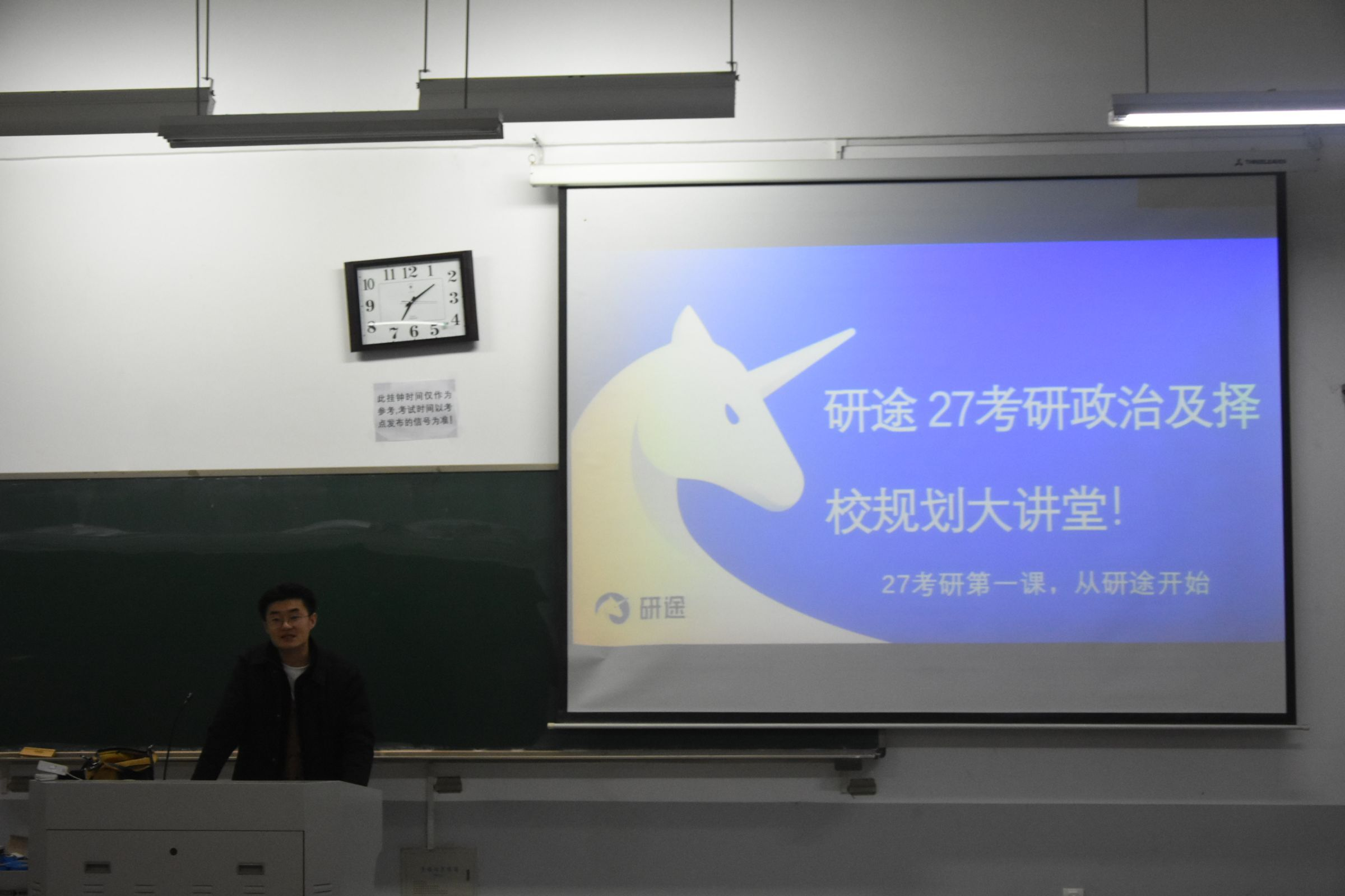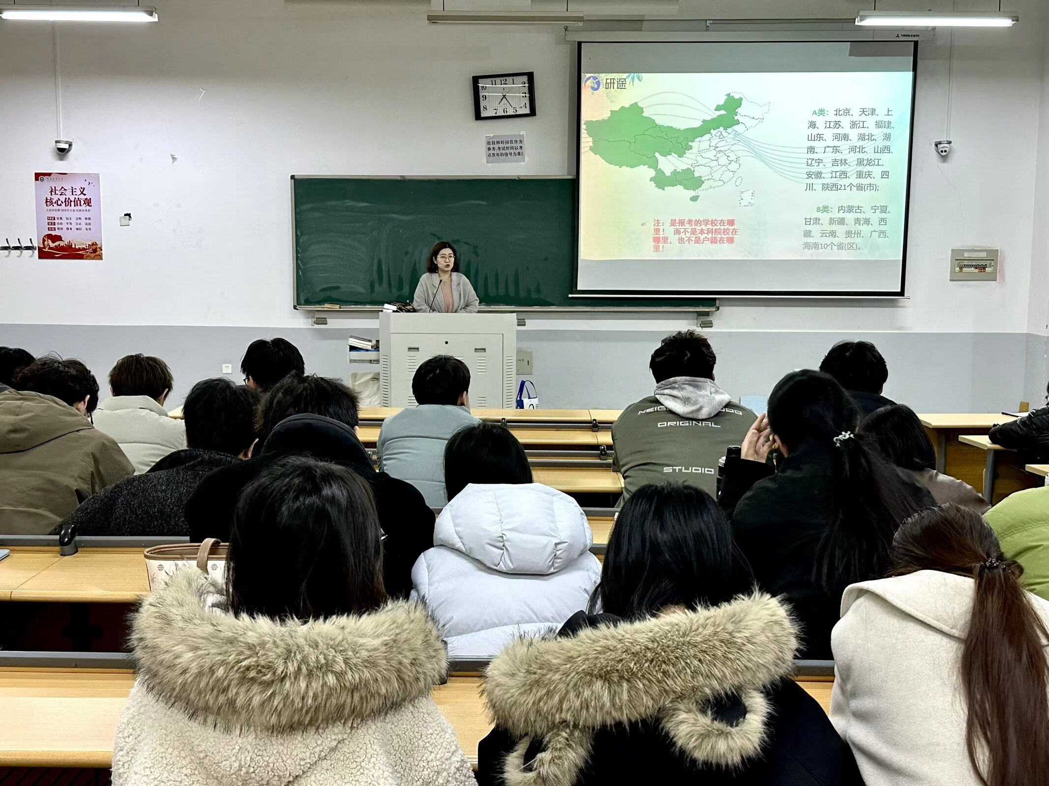 本网讯(审稿:张玥 供稿:侯彦冰)为帮助2027届学子明晰考研备考方向,精准把握政治学科复习重难点,科学制定院校与专业选择规划,营造浓厚的考研备考氛围,3月19日晚上,外国语学院于繁塔楼D109举办“研途27考研政治及择校规划大讲堂”。众多有考研意向的同学到场参与,现场学习氛围浓厚。