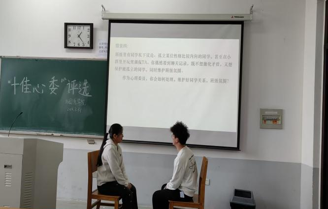 此次评选会经前期材料初审,从各年级中选拔出共16名优秀心理委员参与现场评选。评选环节设置工作汇报与情景答辩,各位心委结合工作实际,从心理主题活动开展、朋辈关怀服务、心理知识普及等方面梳理工作内容,展现履职成效。情景答辩聚焦学业焦虑、人际矛盾等常见心理场景,采用现场抽题方式,由韧心心理咨询站成员模拟典型心理情境,重点考察选手的共情能力,问题研判能力与实操应对技巧。